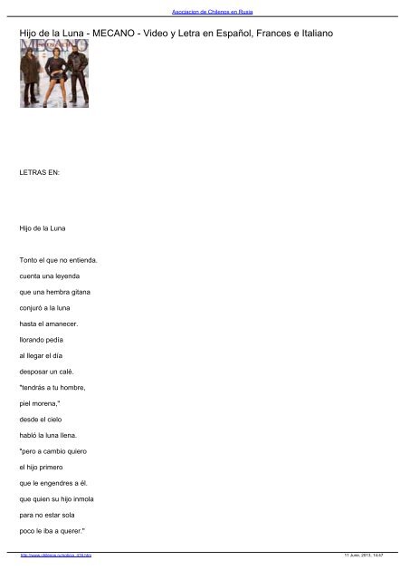Kind des mondes oder kind der luna ist ein 1986 veröffentlichtes lied der spanischen band mecano. Der text gibt vor eine alte legende zu erzählen. Hijo de la luna deutsch übersetzung künstler in.