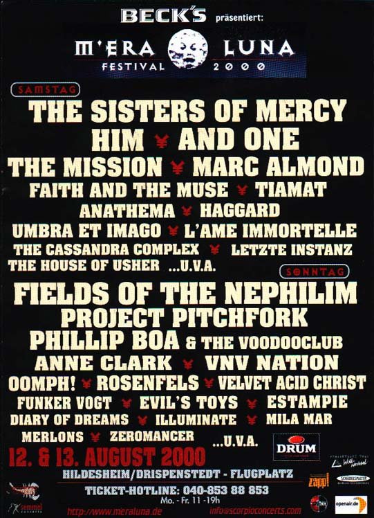 Einmal mehr konnte das beliebte schwarze festival ein ausverkauft vermelden. Mera luna fm grün rockt wochenmarkt food line up history rahmenprogramm mittelaltermarkt modenschau line up tickets tickets interaktiv ticketbingo werde botschafter downloads videos smartphone app shop presse. It is held annually on the second weekend of every august in hildesheim germany at flugplatz hildesheim drispenstedt 1 a former british army airbase.