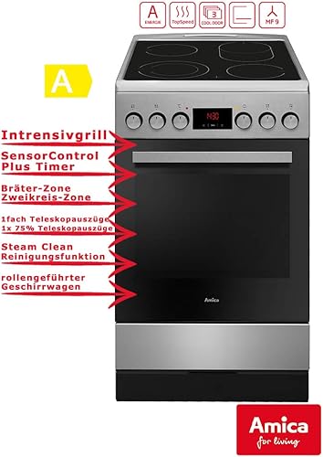 Amica Shc 903 001 E Edelstahl 50cm Standherd Teleskopauszuge 1fach X 75 Timer Heissluft Ceran Kochfeld Mit Zweikreis Zone Brater Zone Amazon De Elektro Grossgerate